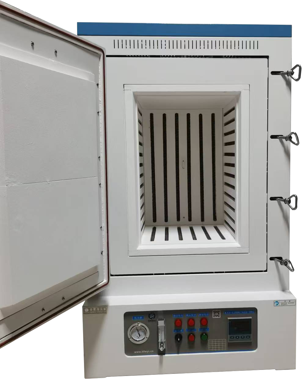 ?真空密封:爐門采用整體平面磨銑,硅膠條內嵌密封,具有密封性強,爐門開啟、關閉方便;預留真空,氣路接口,可配合真空系統,混氣系統使用,可通惰性氣體等,禁止通入有毒有害氣體,可接真空泵,配機械壓力表-0.1-0.15MPa,浮子流量計10-10ml/min;真空度可達-0.1mPa。