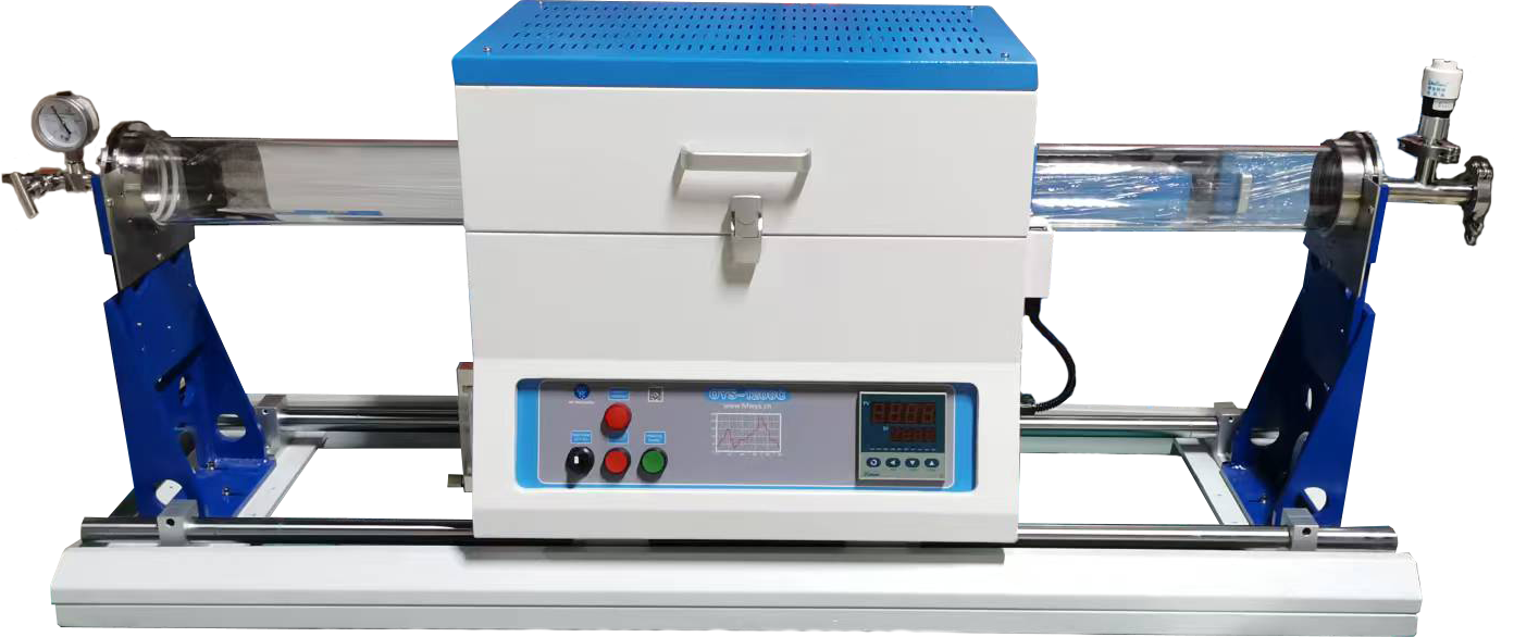 ?爐管高純石英管φ100*1000mm,鍍鉻鋼制成的雙滑軌,手動滑軌長度1400mm。