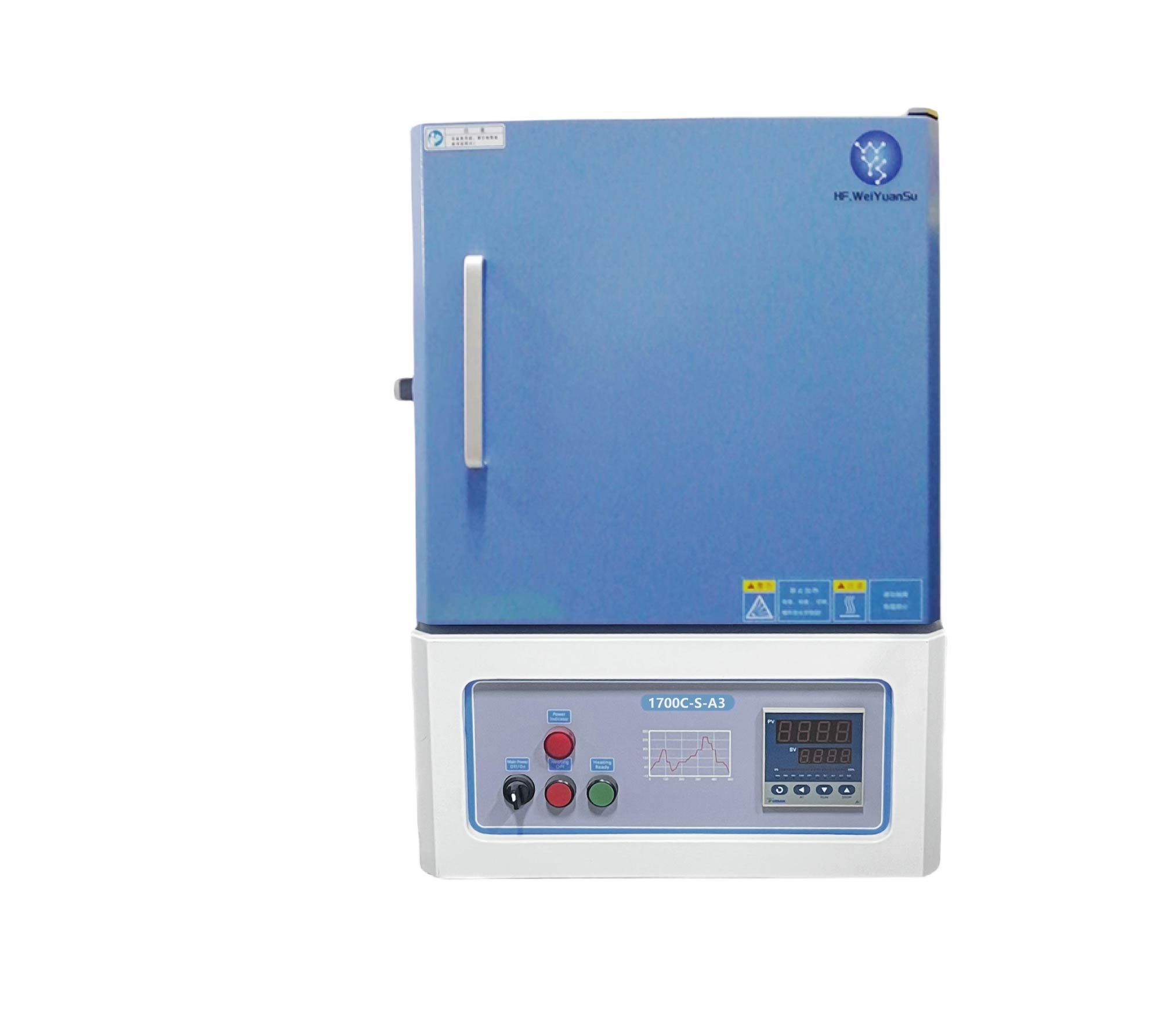 ?爐體結構:采用雙層殼體結構,并帶有風冷系統;爐膛采用高純氧化鋁纖維材料,最大程度的減少能量損失;內爐膛表面涂有美國進口的高溫氧化鋁涂層,可以提高反射率及設備的加熱效率,同時也可以延長儀器的使用壽命,帶有過熱和斷偶保護;爐膛內兩面加熱,加熱速率快,溫場均勻;爐門配有安全限位開關,并且爐門上安裝有一個保護門閂,防止意外開啟及爆炸。